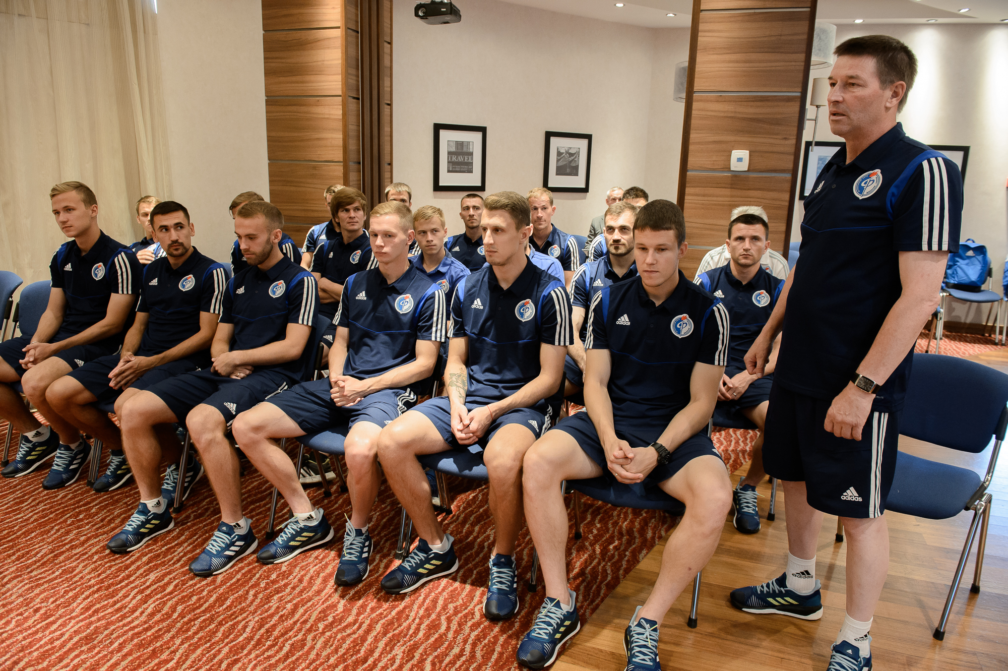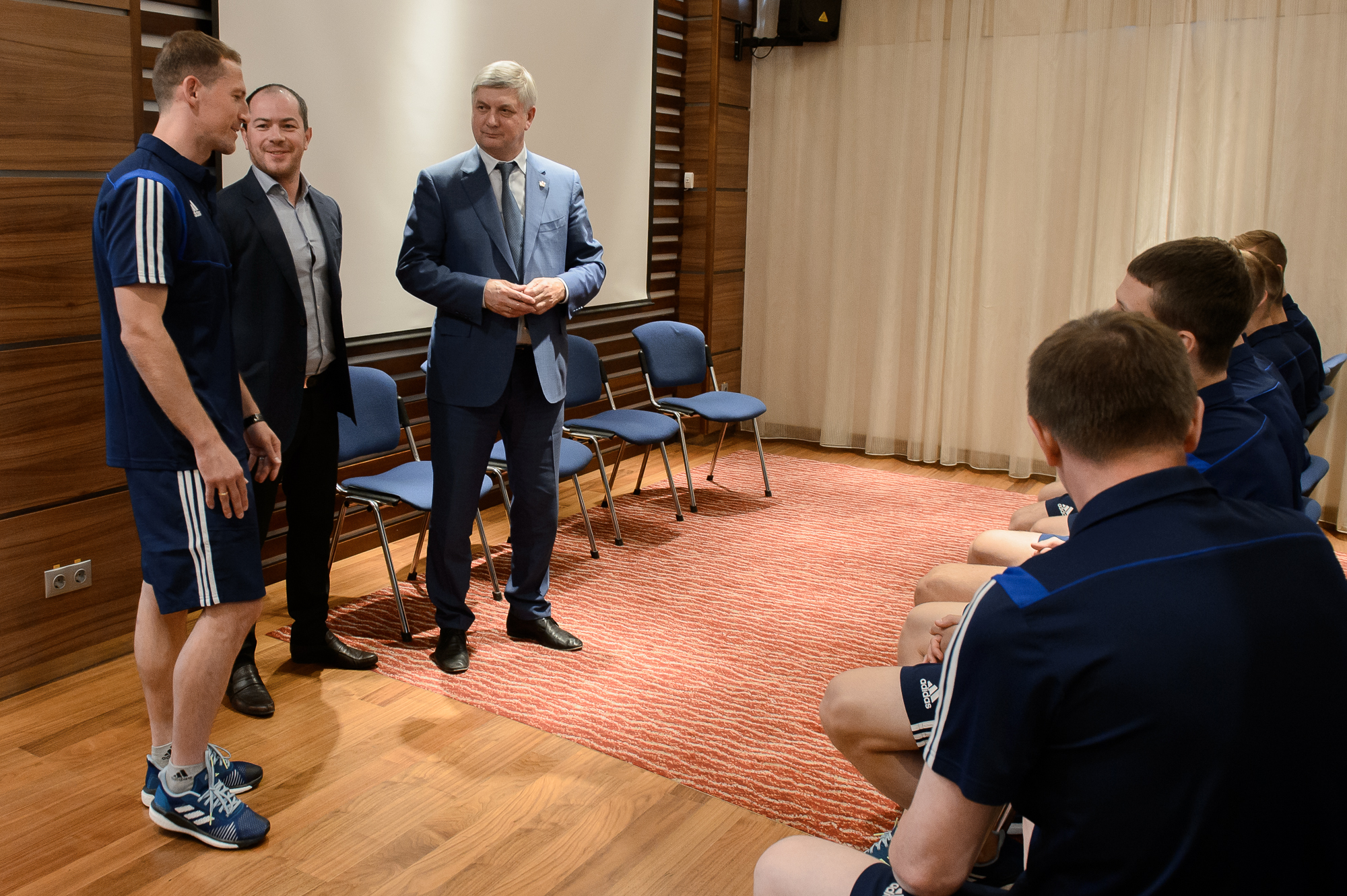 "Встреча главы региона с клубом прошла в неформальной обстановке, на базе отеля Hampton , где у игроков проходили теоретические занятия...", - сообщает сайт областного правительства.